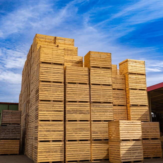 Cajas y estructuras de madera diseñadas para proteger y transportar mercancía.